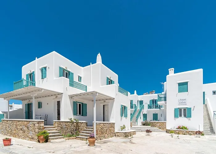 Az apartmanban tartózkodó vendégek igénybe vehetik a rendelkezésre álló önellátó felszereléseket, többek között a hűtőt és konyhai edényeket. Az ételek széles választékát kínáló Kostantis Restaurant és Aperanto Galazio 6 perc sétára található. A vendégek a Mikonosz repülőtértől 5 km-re lesznek elszállásolva.